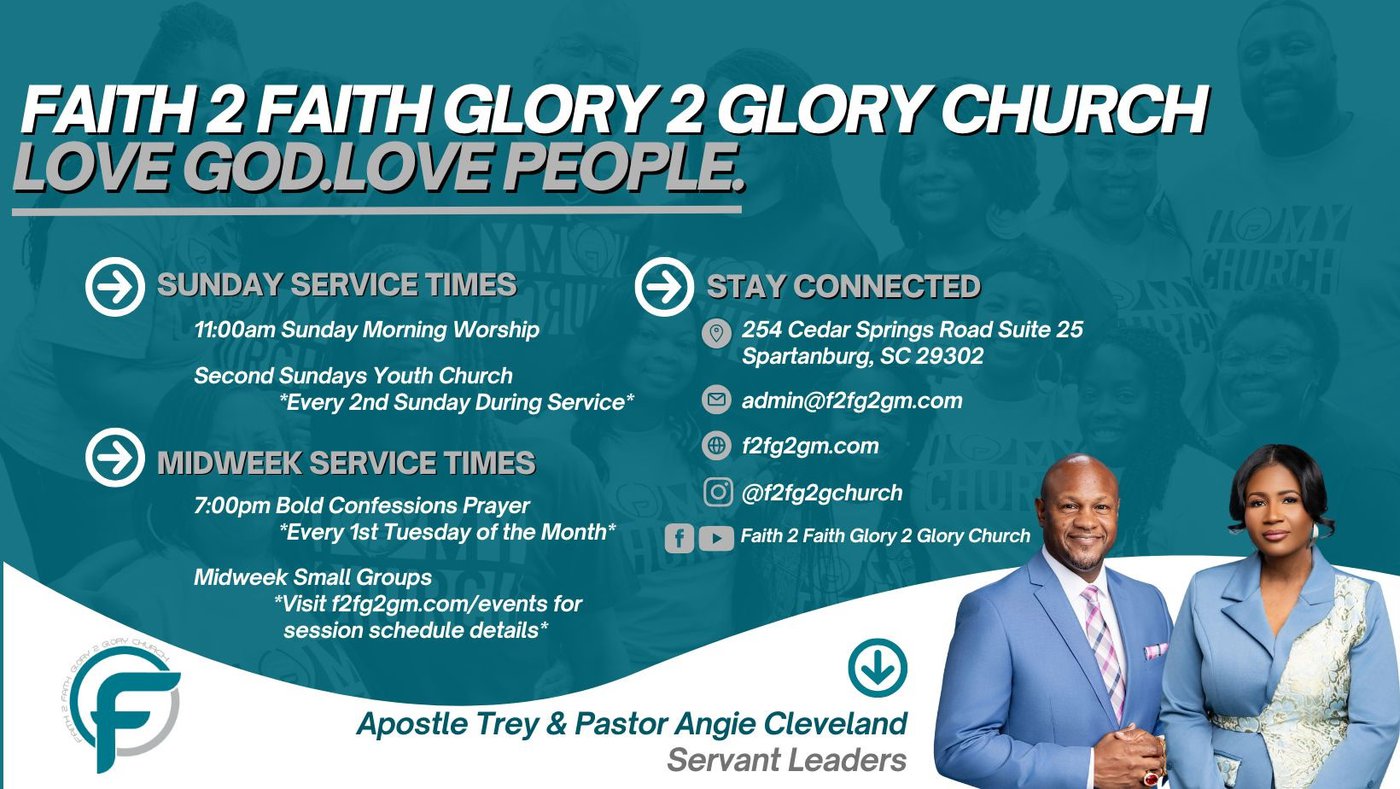 Sunday's at Faith 2 Faith are exciting, casual, and relaxed. Come as you are. We are excited to meet you!